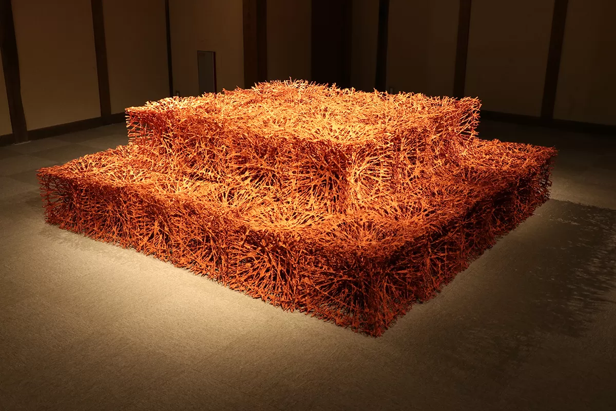 Washi Transformed features work by nine contemporary Japanese artists: Hina Aoyama, Eriko Horiki, Kyoko Ibe, Yoshio Ikezaki, Kakuko Ishii, Yuko Kimura, Yuko Nishimura, Takaaki Tanaka, and Ayomi Yoshida. Through highly textured two-dimensional works, expressive sculptures, and dramatic installations, these artists explore the astonishing potential of this traditional medium with a range of techniques—from layering, weaving, and dyeing to shredding, folding, and cutting. The breathtaking creativity of these artistic visionaries deepens our understanding of how the past informs the present, and how it can build lasting cultural bridges out of something as seemingly simple and ephemeral as paper.