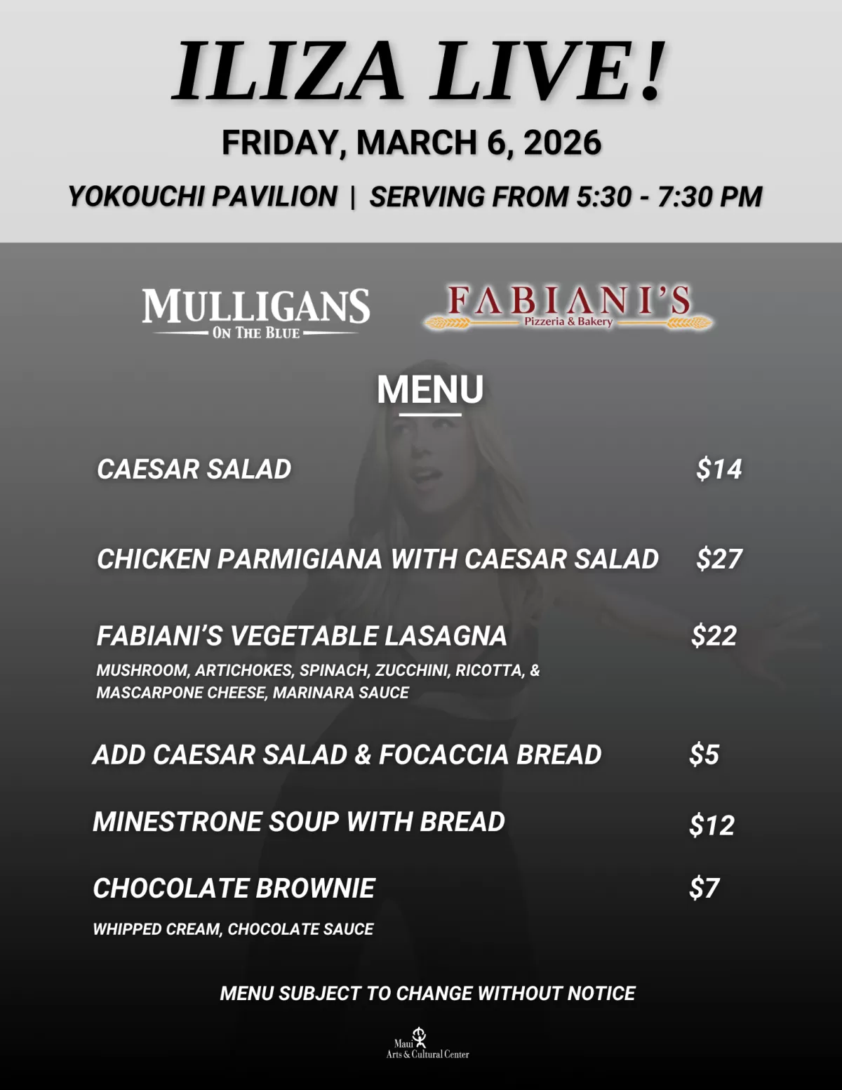 In keeping with the MACC’s dedication to supporting the victims of the wildfires, patrons for this show are asked to bring non-perishable items for the Maui Food Bank.