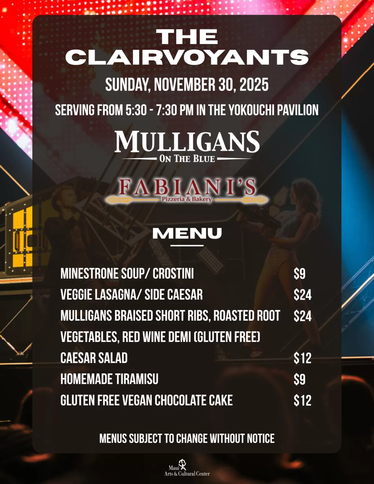 The MACC will be collecting donations for the Maui Food Bank during this event. We ask that our patrons bring needed items for those impacted by the wildfires. Donation bins will be located near the MACC's main entry gates.